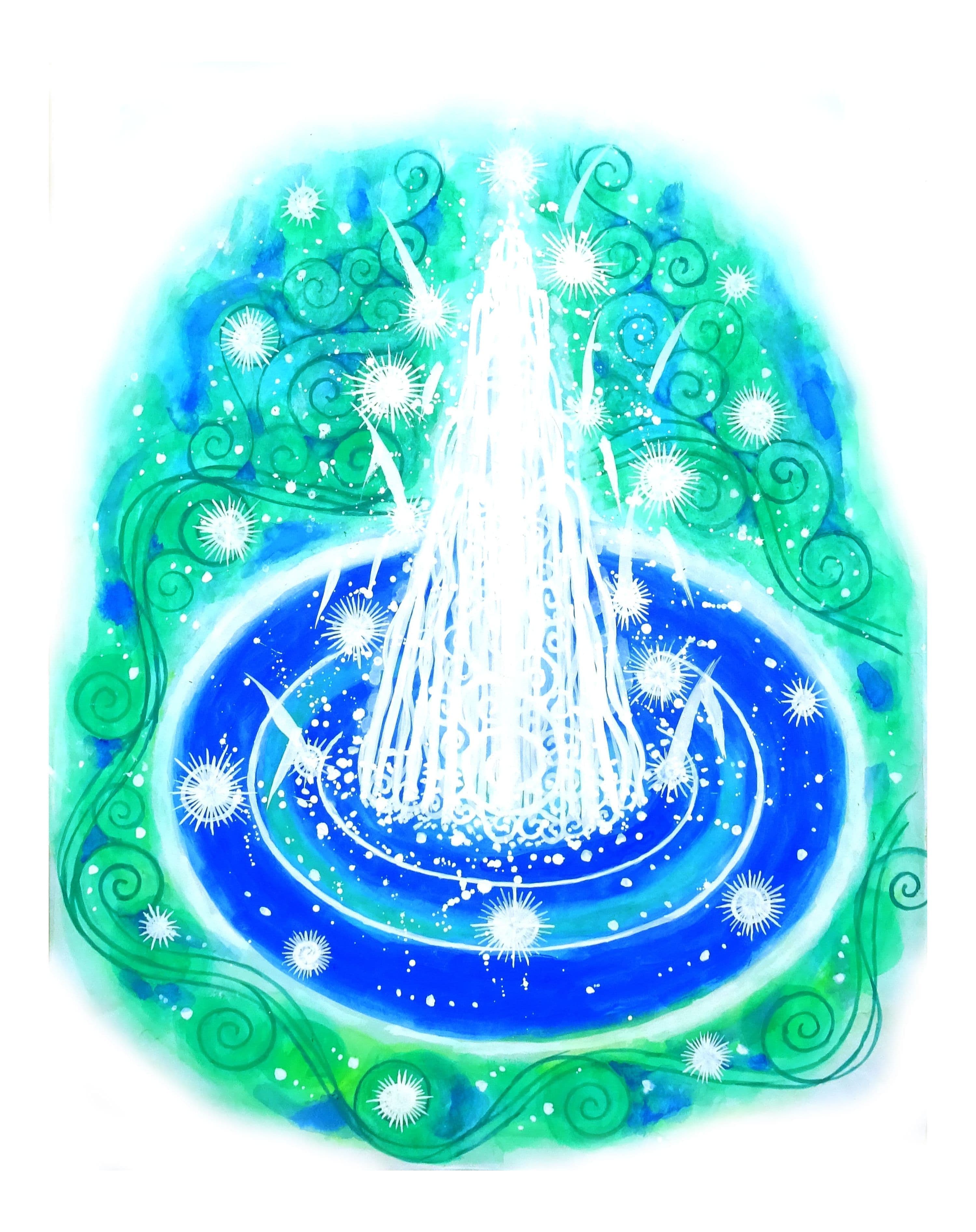 Holy water is gushing from the lake in the forest.The holy Shasta is filled with pure and rich water.In that way, the energy of purity and richness overflows from inside me.